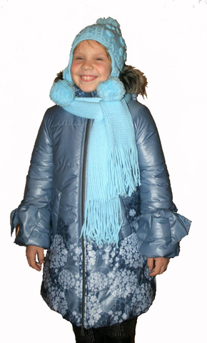 Ткань верха дюспа-лакэ, подкладка флис+п/э, утеплитель альполюкс 300, капюшон отстегивается(мех нет), отделка по рукавам-бант, два кармана, внутренняя кулиса-утяжка по талии. Внутренняя ветрозащитная планка.