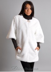 Шуба свободного кроя украшенная элегантной брошкой - застежкой. Изделие застегивается на крючки,а также модель имеет удобные втачные карманы. Рукав 3/4.